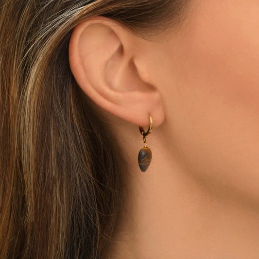 Pendientes de aro mini Arizona Dream con hoja de ojo de tigre - dorado