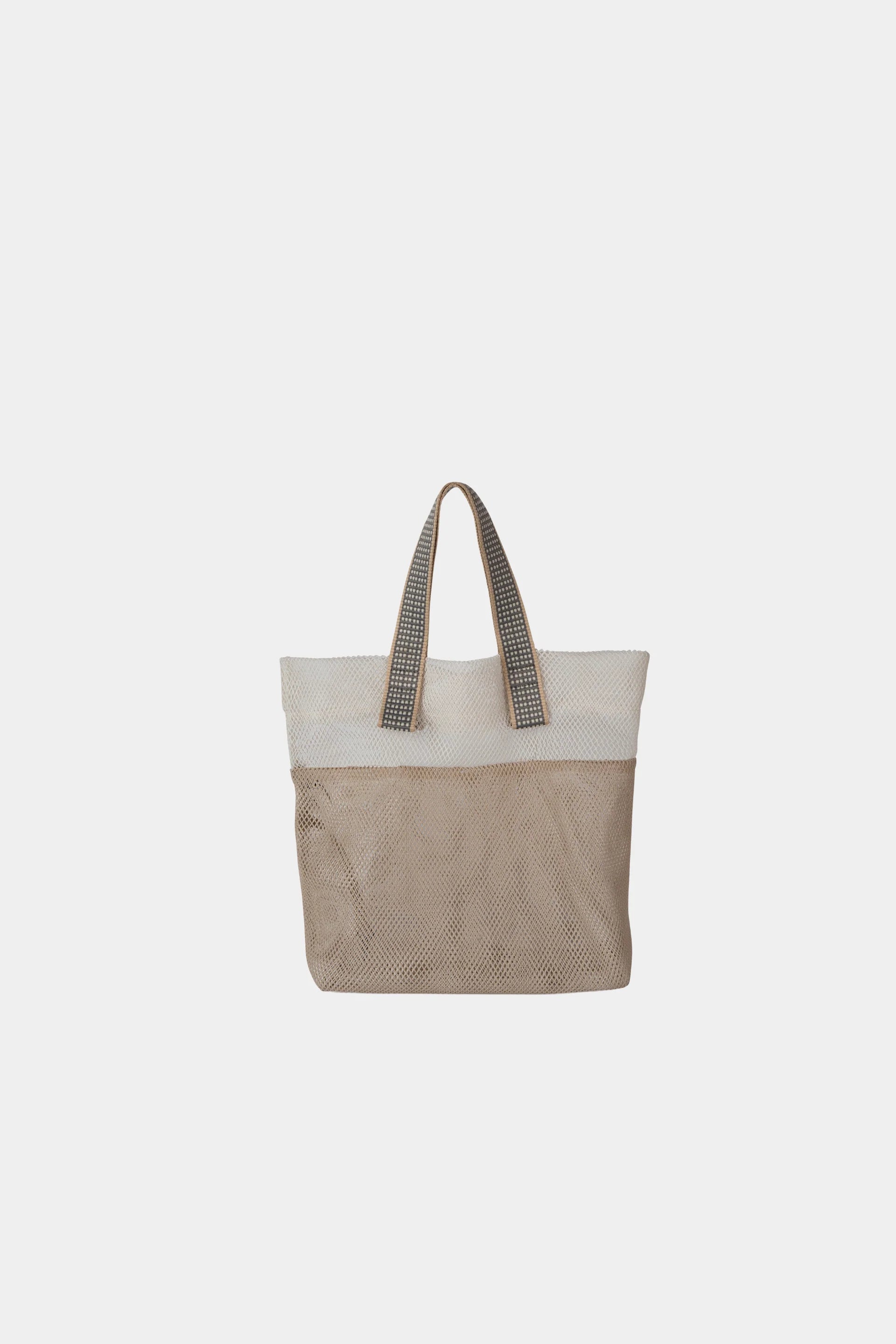 Bolsa de malla, forma tote. Este modelo bicolor de estilo refinado destaca por sus bonitos efectos de transparencia y una paleta de colores suaves y brillantes. Asas tejidas. Bolsillo interior extraíble con cremallera. Bolso elegante y ligero, perfecto para el día a día, para llevar en la mano o al hombro. Sencillo e ideal para acompañar todas nuestras estolas.