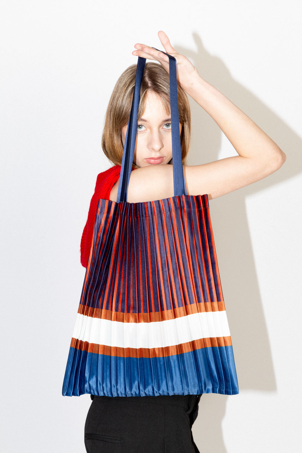 Bolso tote de raso plisado Chiavari, tamaño 40 x 48 cm.