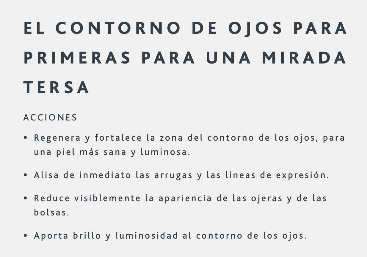 El contorno de los ojos es la primera parte del rostro que refleja la fatiga y los signos de la edad. Gracias a la tecnología REPAIR+, el contorno de ojos ACTIVE REPAIR ayuda a borrar los signos de fatiga, para una mirada evidentemente más juvenil y luminosa.