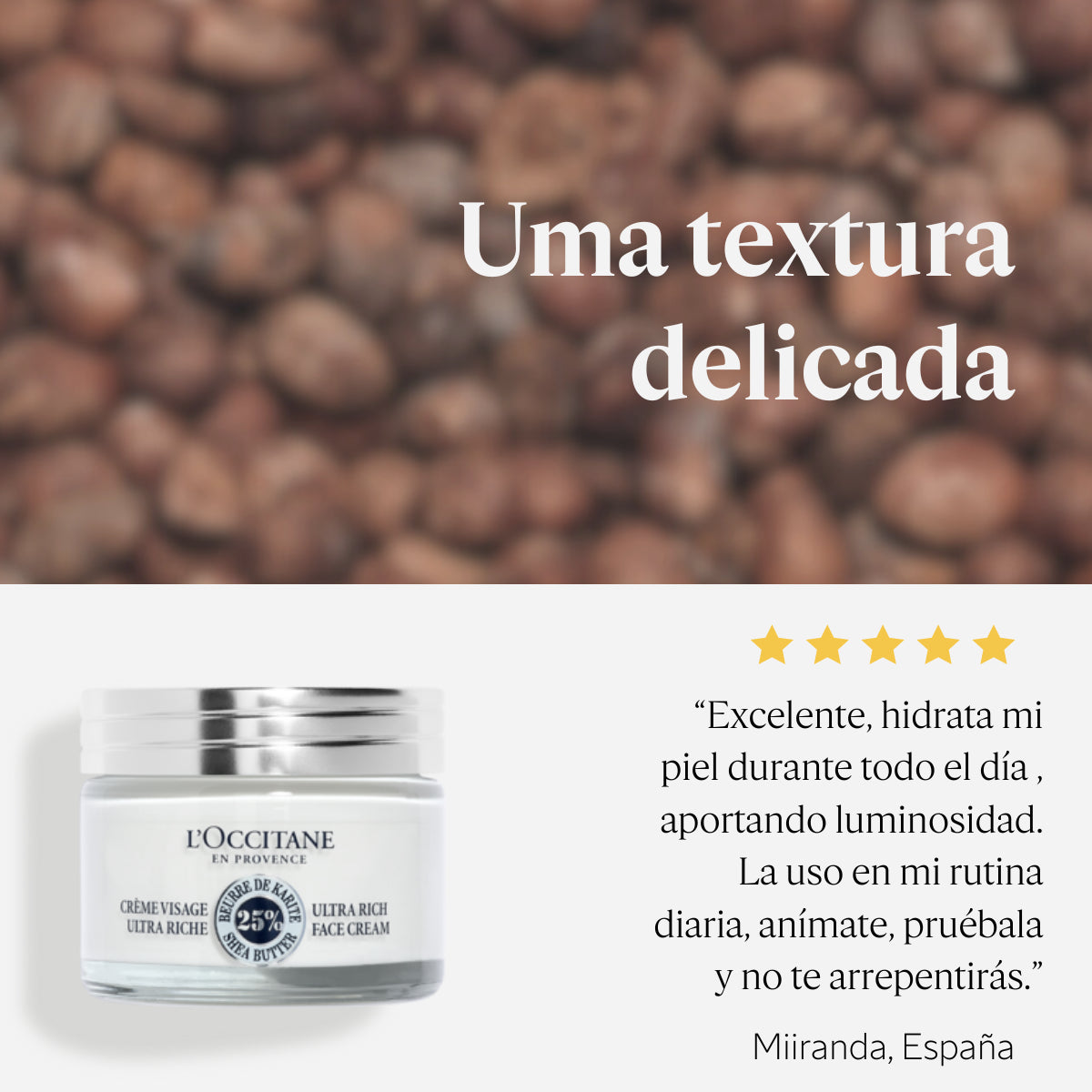 Esta crema hidratante está formulada con un 25% de manteca de karité para satisfacer las necesidades esenciales de las pieles secas.
