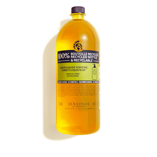 Económica y sostenible, esta recarga de jabón líquido Verbena y karité dejará tu piel fresca y suave al tacto.