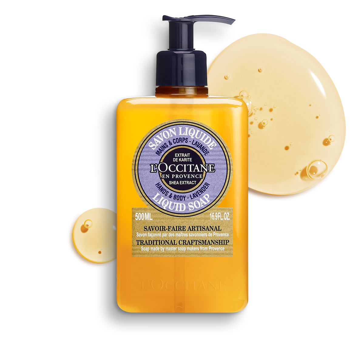 Formulados sin aceite de palma, nuestros jabones líquidos están hechos de aceite vegetal según la receta de cocina tradicional en un caldero de los maestros jaboneros de la Provenza. Enriquecido con manteca de karité conocida por sus propiedades nutritivas, este jabón líquido limpia la piel dejándola suave y delicadamente perfumada con el icónico aroma provenzal de la Lavanda.