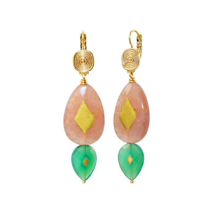 Pendientes Babylone de cuarzo fresa y ágata verde - rosa