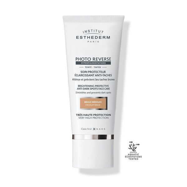 Las manchas marrones o manchas aparecen con la edad, pero también a raíz de exposiciones prolongadas y reiteradas al sol o a la luz azul. Hiperpigmentada, irregular, la luz rostro se apaga y pierde todo su resplandor. . El tratamiento PHOTO REVERSE con color unifica el rostro, disimula, previene y corrige las manchas, incluso en caso de exposición al sol o a la luz azul. Producto con doble protección solar SPF 50+ y Global cellular protection que garantiza una defensa alta y experta contra los rayos UVA y UVB. No comedogénico.