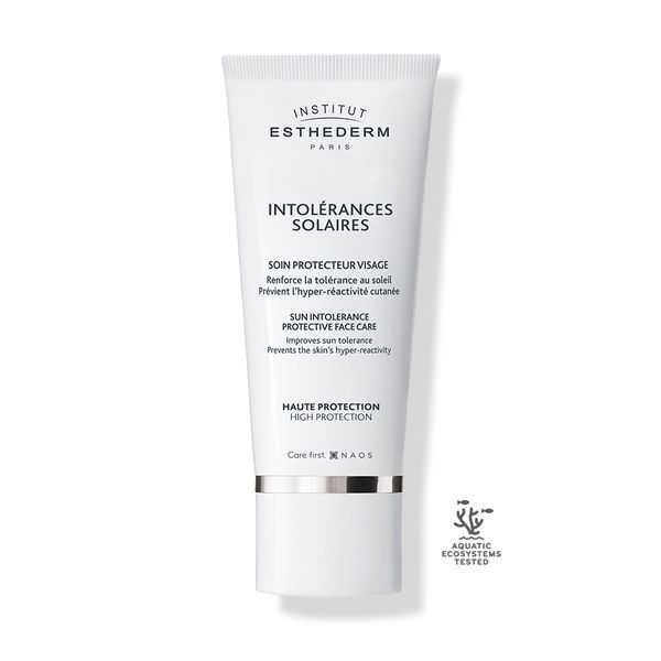 La piel intolerante o alérgica al sol, la que sufre hiperreactividad, necesita, con la edad, una protección antiarrugas capaz de reforzar sus capacidades de resistencia para adaptarse mejor al sol, protegerla y calmarla, al tiempo que la preserva del fotoenvejecimiento. La crema solar de alta protección INTOLERANCES SOLAIRES atenúa la sensibilidad de la piel al sol. Aporta bienestar y alivio a las pieles reactivas o intolerantes al sol. Producto con doble protección solar SPF 50+ y Global cellular protection que garantiza una defensa alta y experta contra los rayos UVA y UVB.