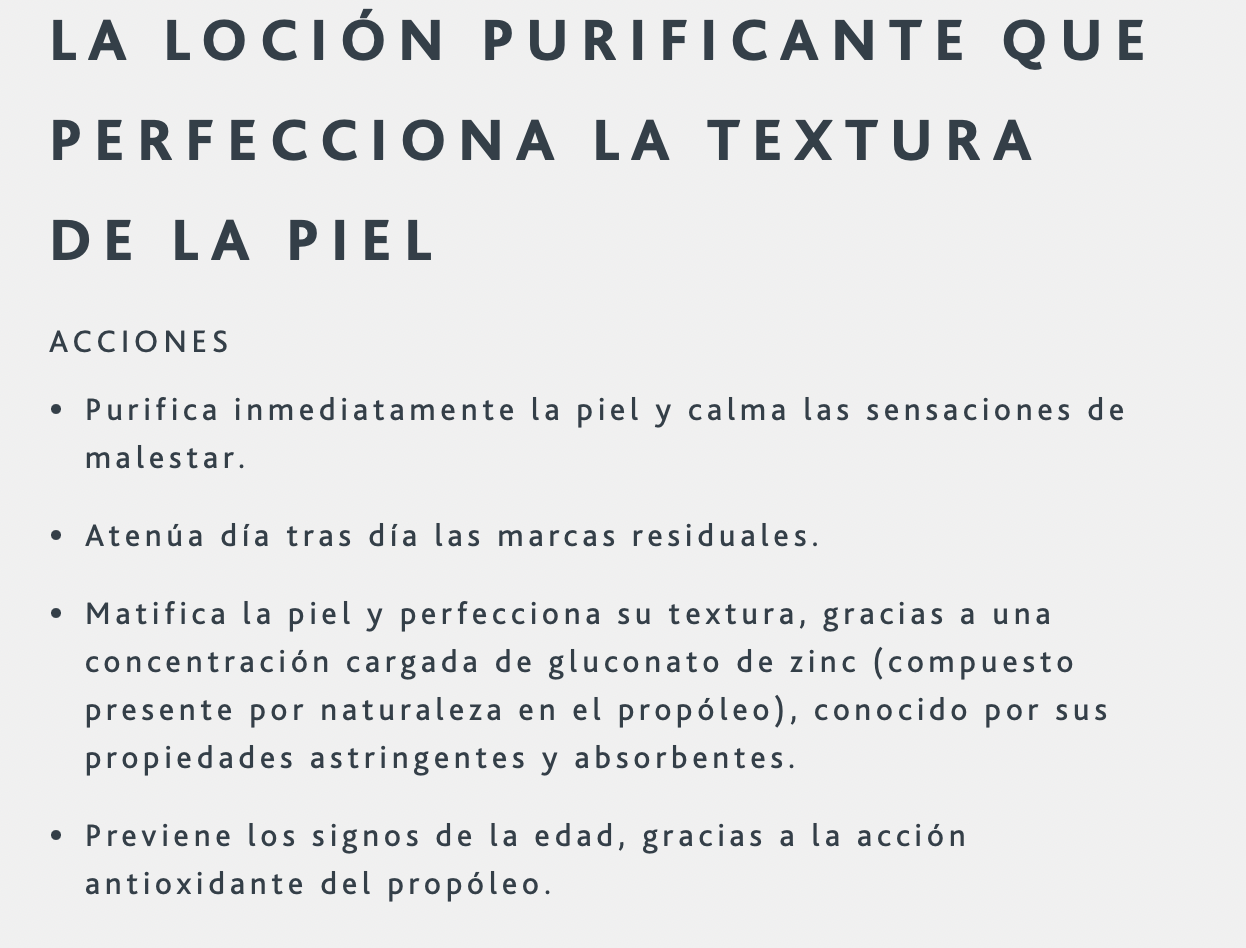 Rojeces, granitos, poros dilatados, tez apagada, brillos… La piel necesita calmarse y luego repararse. El sérum-loción Propolis+ Zinc de INTENSIVE trata las imperfecciones aportando suavidad a la piel. Su acción específica trabaja con los poros dilatados y la textura irregular de la piel.