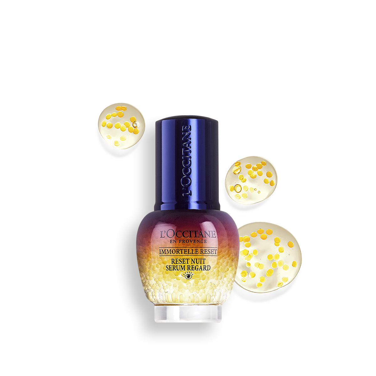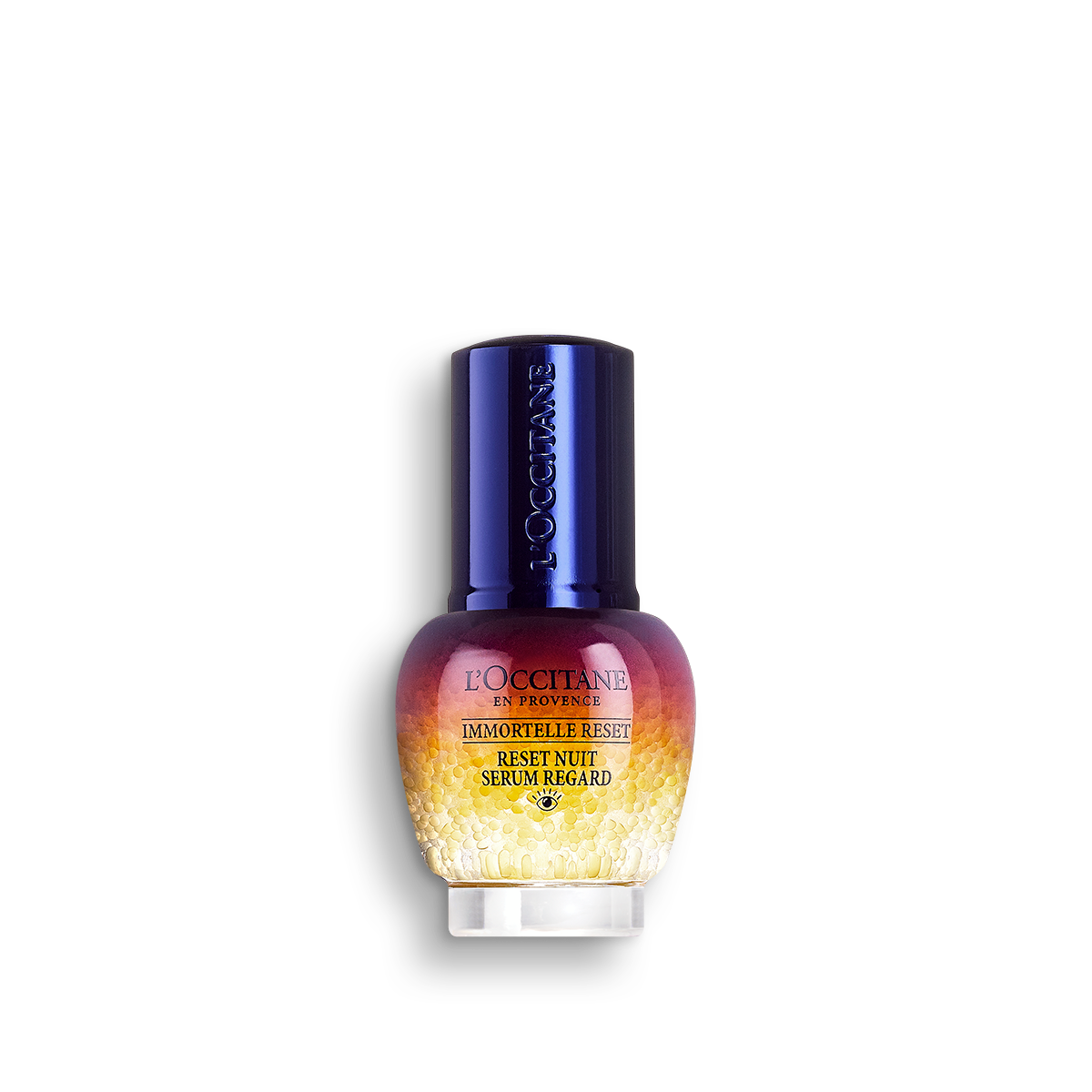 El sérum para el Contorno de Ojos de noche Reset Siempreviva actúa para reducir todos los signos visibles de fatiga, para que tus ojos luzcan frescos y descansados cada mañana. Reduce la apariencia de bolsas y ojeras, y ayuda a suavizar las arrugas y líneas finas. Este extraordinario sérum es adecuado para todo tipo de piel y se combina con todos los bálsamos para ojos de L'OCCITANE.