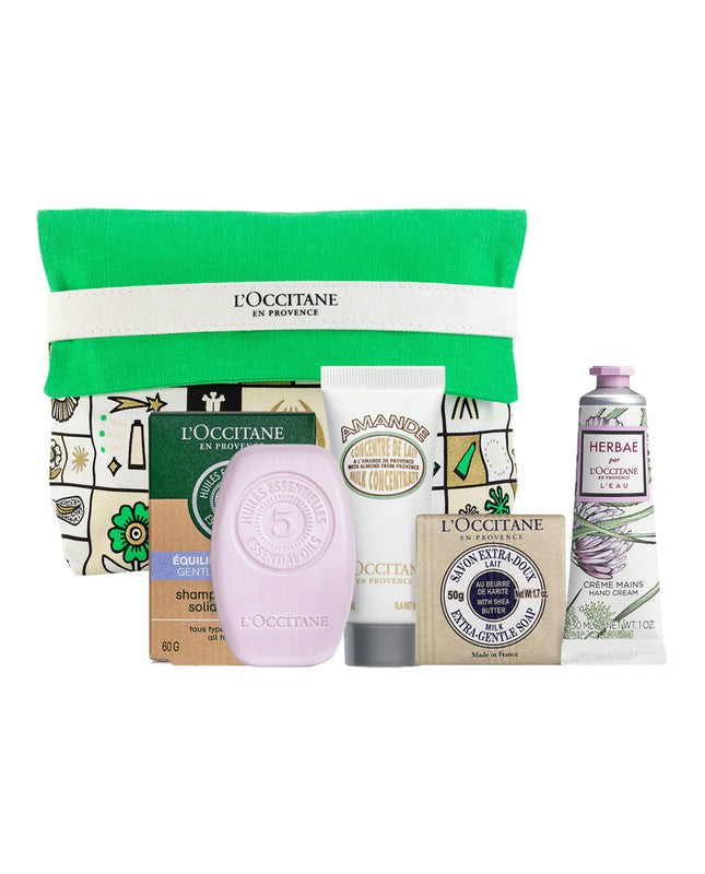 Con el diseño exclusivo de la ilustradora francesa Eva Offredo, quien rinde homenaje a la diversidad y la naturaleza inspirándose en las culturas japonesa e italiana. Este neceser, de un tono verde festivo y alegre, es el regalo ideal para los amantes de los viajes y las escapadas gracias a los formatos nómadas. Incluye también formatos sólidos con fórmulas que respetan la biodiversidad.