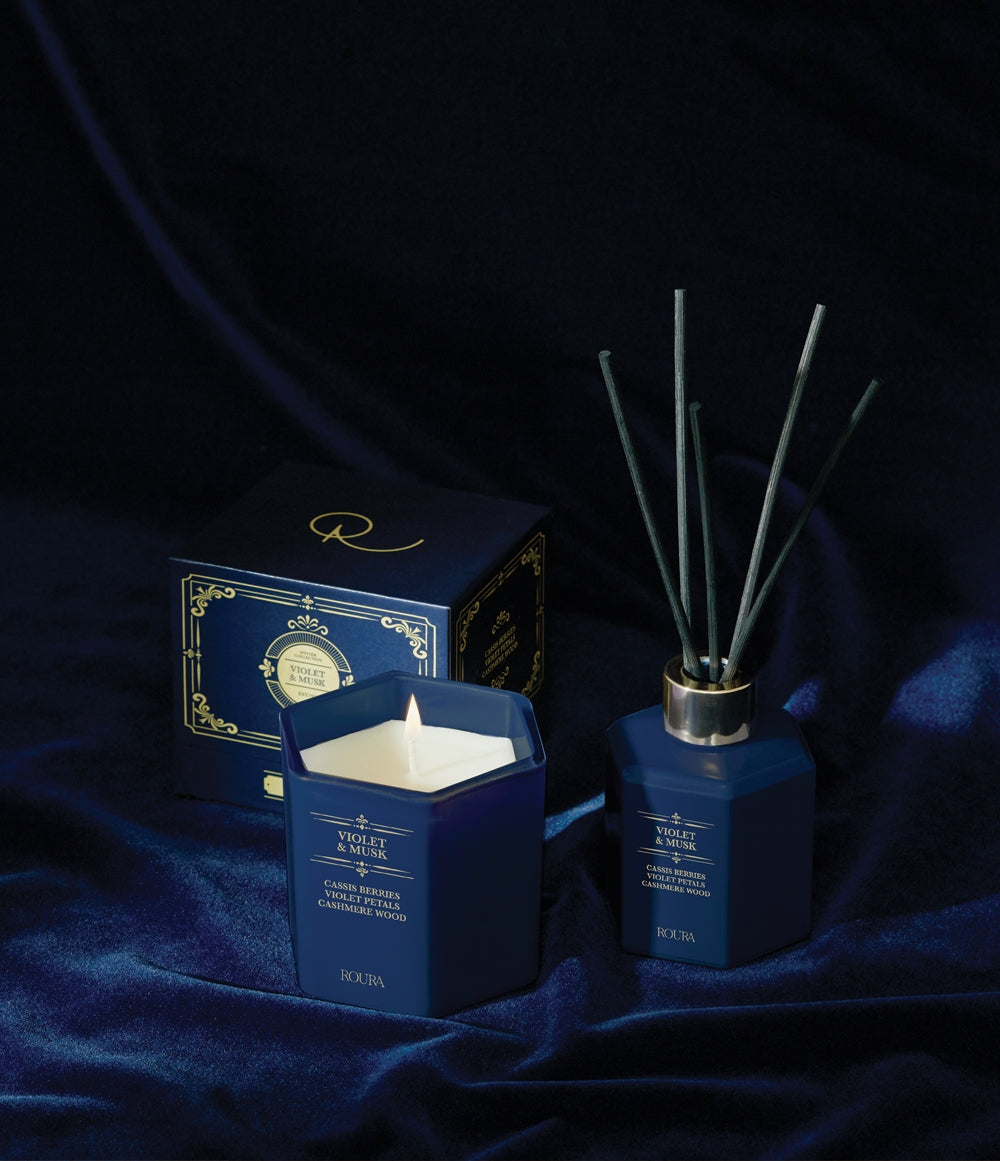 Vela aromática. Fragancia de una feminidad sofisticada e hipnotizante con acordes atalcados, de la aterciopelada violeta, que se combinan con la lujosa madera de cachemira y un cautivador aroma de grosellas negras sobre una seductora base de ámbar y white musk.