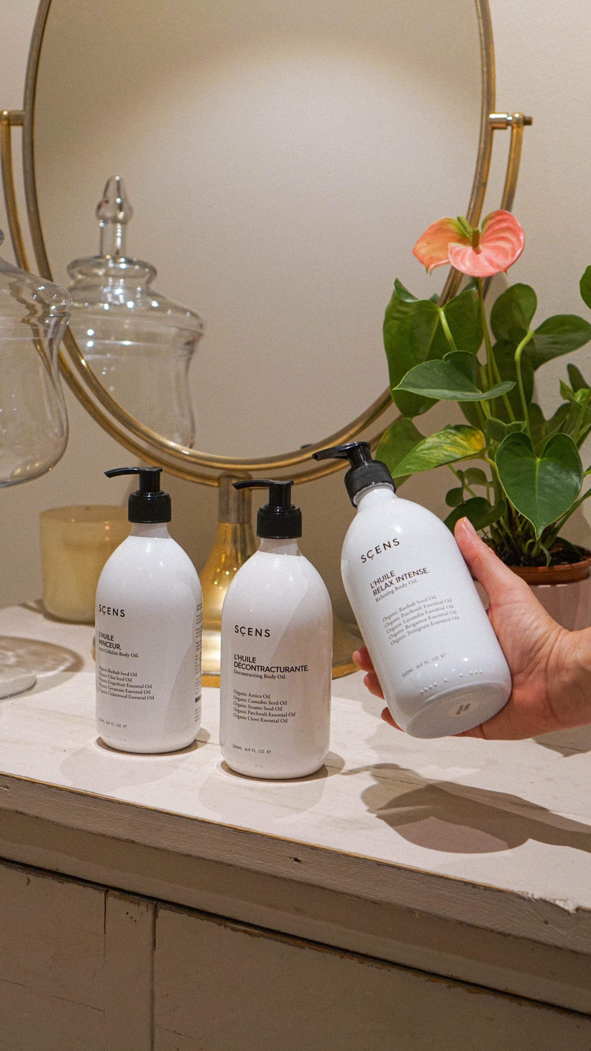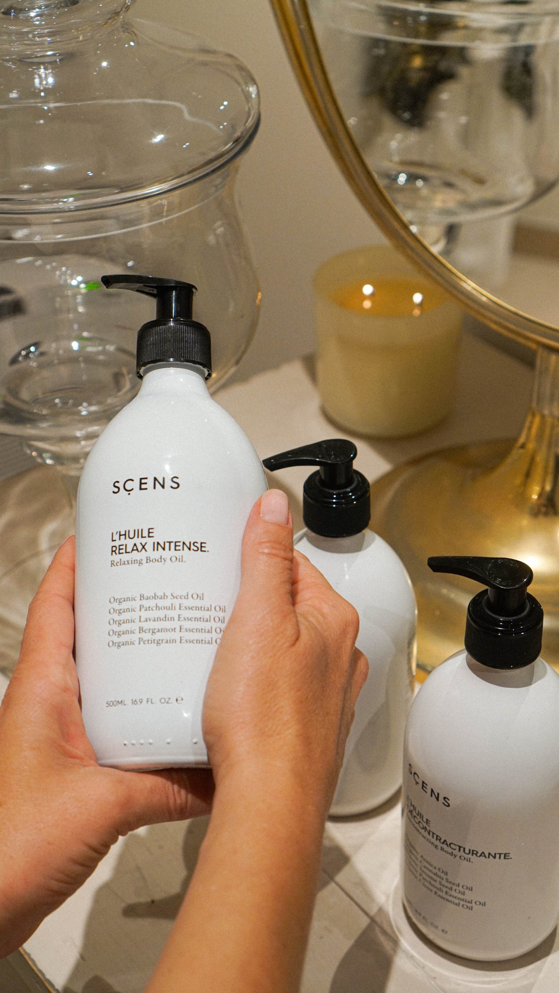 RELAX INTENSE: Aceites orgánicos de Baobab, lavanda, bergamota y uva orgánica que aportan 24 horas de confort en la piel. Textura ligera, calmante e hidratante. Sensación de bienestar inmediata.