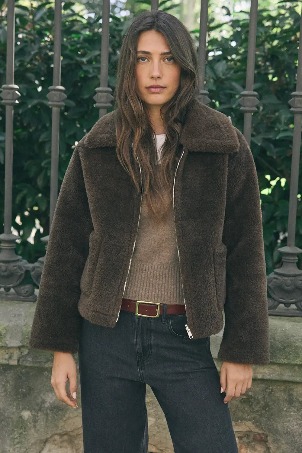 Chaqueta de pelo sintético reversible. Confeccionada con fibras recicladas. Cierre con cremallera. Sin forro.