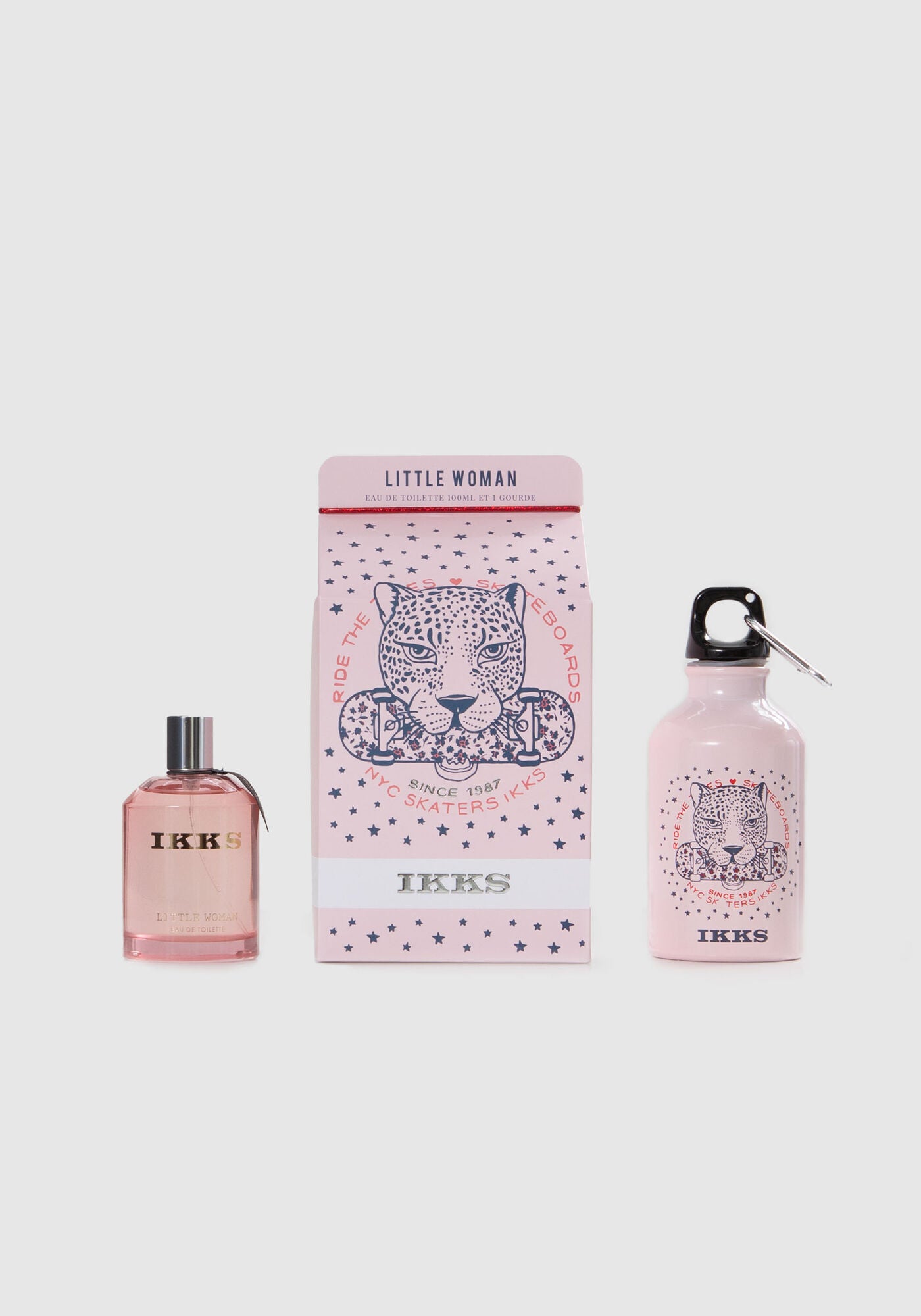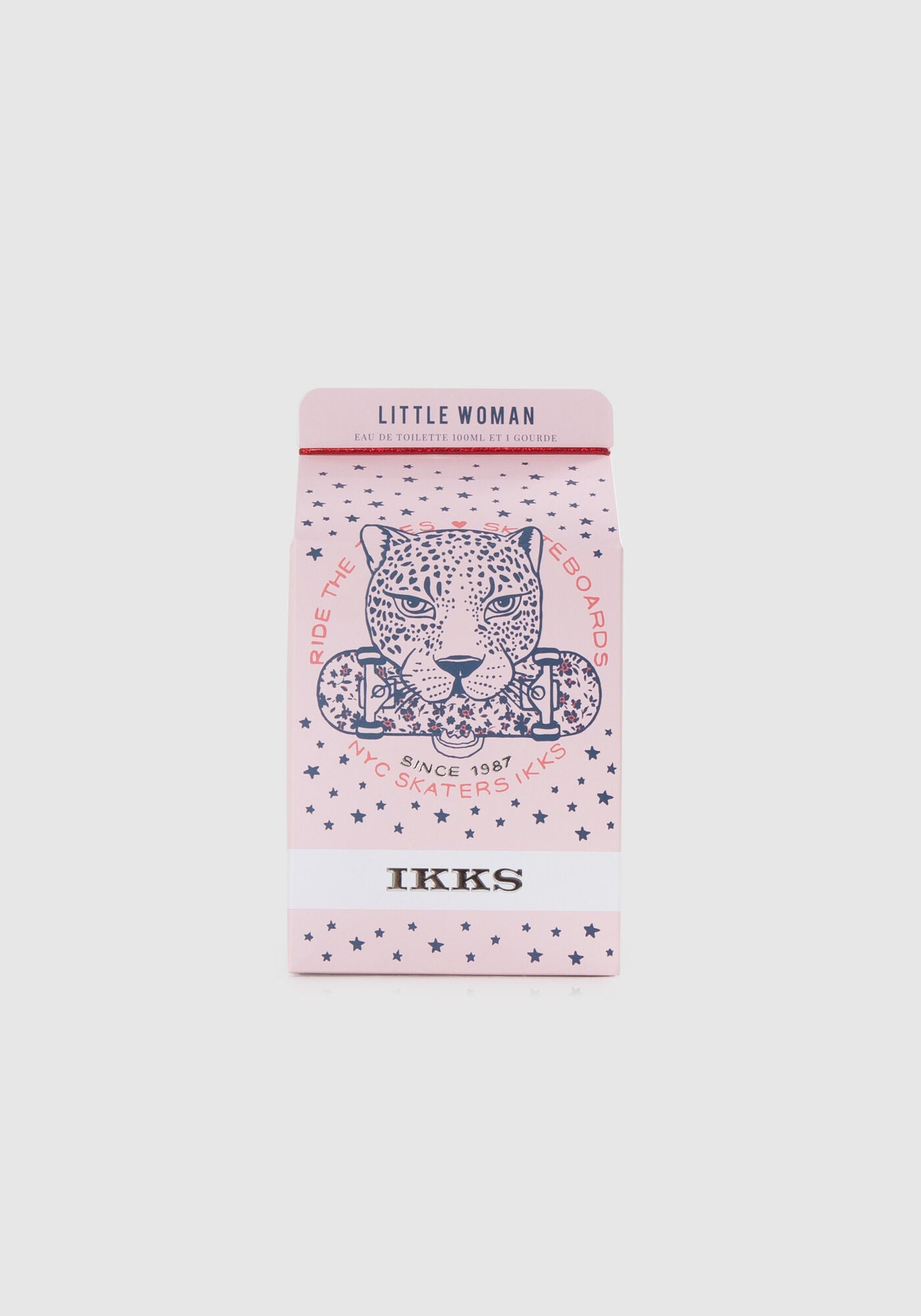Redescubre el perfume para niñas IKKS Little Woman en su nuevo cofre de edición limitada "LEOPARD RIDERS". La eau de toilette se abre con notas frescas de melocotón y cardamomo, subrayadas por notas de violeta. El haba Tonka, el jazmín, el sándalo y el ámbar del fondo refuerzan el carácter chispeante y revigorizante del perfume.
