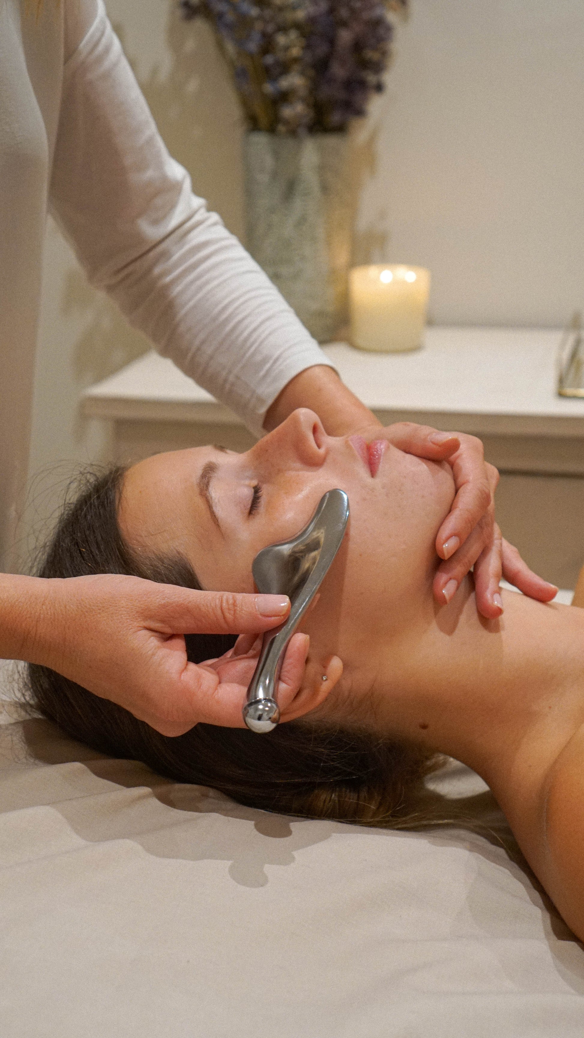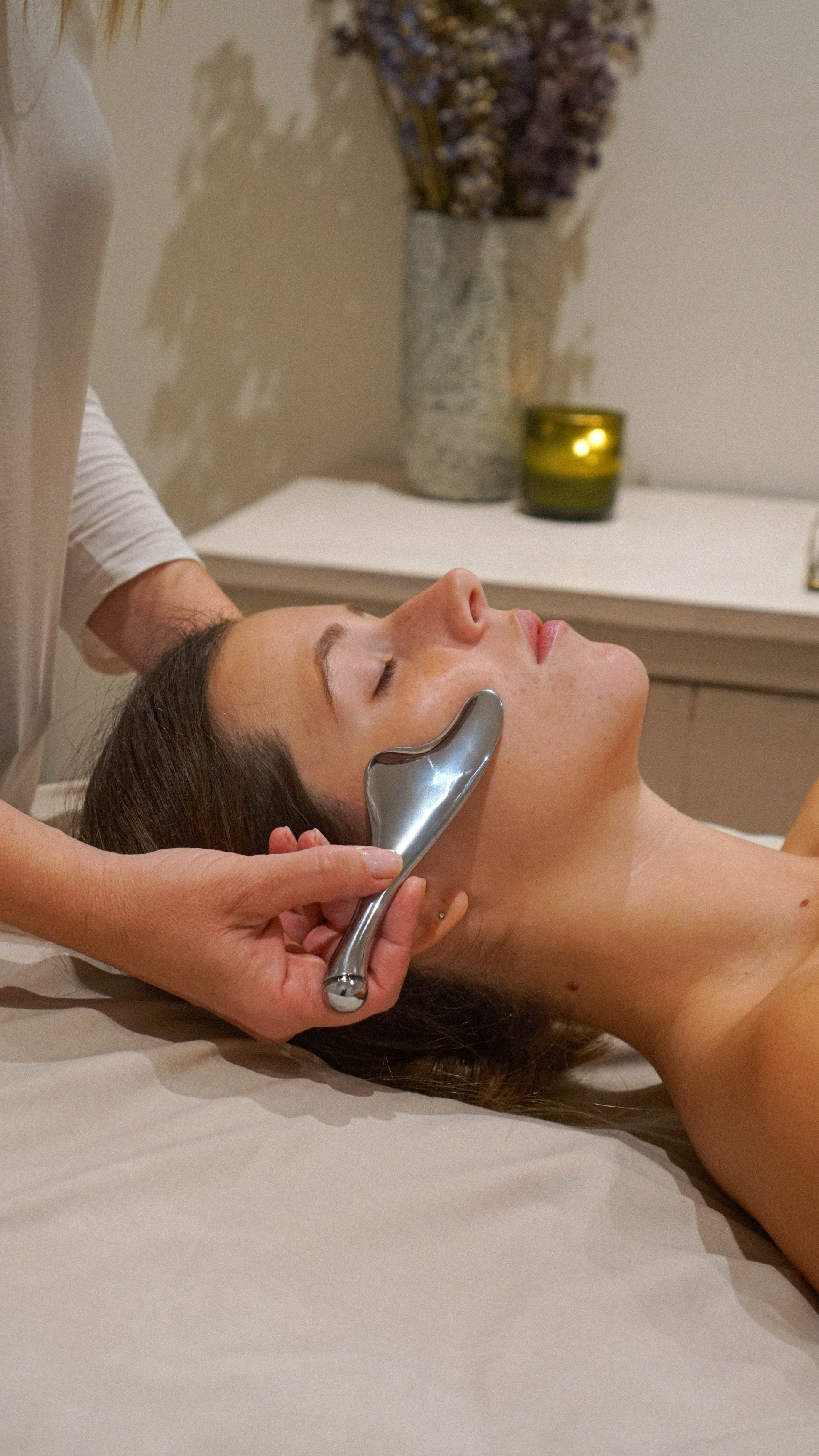 Para todo tipo de piel. Un tratamiento global de efecto lifting inmediato. Energizante, rejuvenecedor y poderosamente hidratante. Infusión revitalizante que minimiza los signos de relajación de la piel. El masaje miofascial con guasha no deja indiferente.