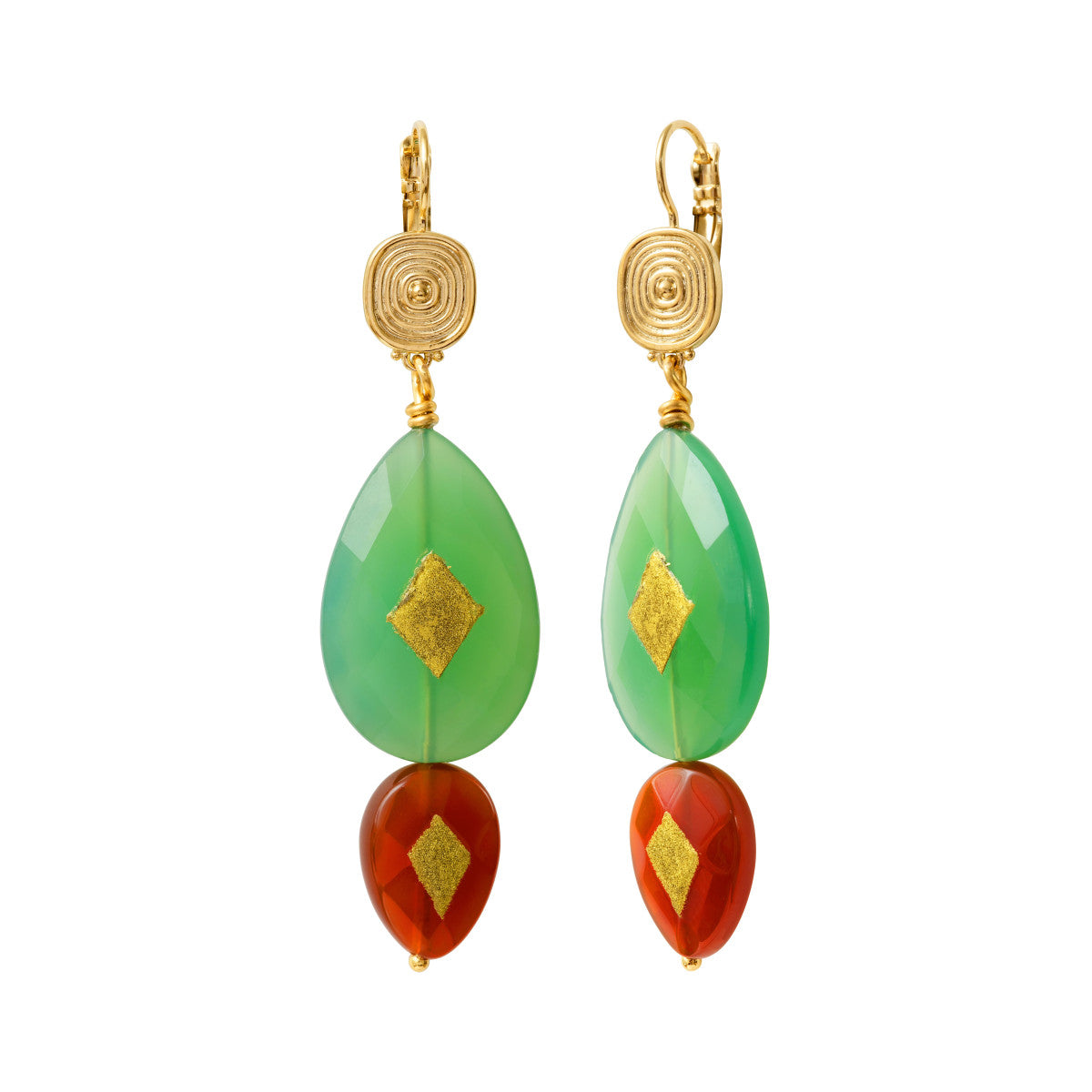 Pendientes durmientes de ágata Babylone y cornalina - verde
